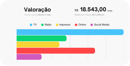 A Simpling converte a presença na mídia em um indicador financeiro estimado, ajudando você a comparar visibilidade, repercussão e retorno de exposição de forma mais clara.